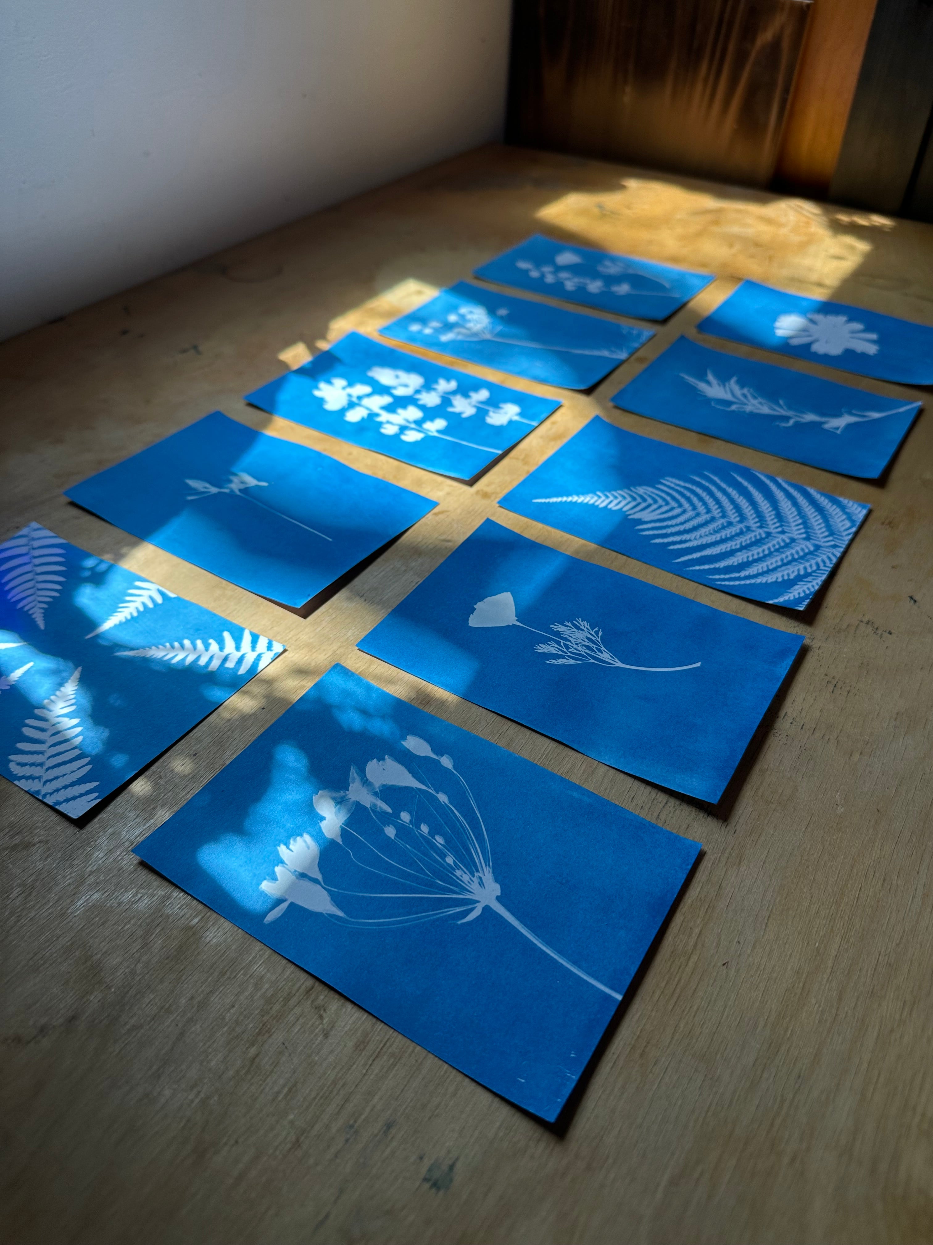 Join Kali for a hands-on experience in the art of sun printing via online or in-person workshops.